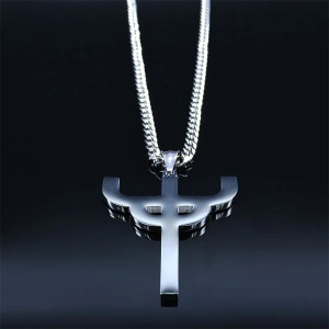 Stainless steel pendant with chain. Material: stainless steel Gender: unisex Chain length: ± 50 cm Weight (pendant + chain): ± 24 gram Height/width: 50 x 42 mm ..