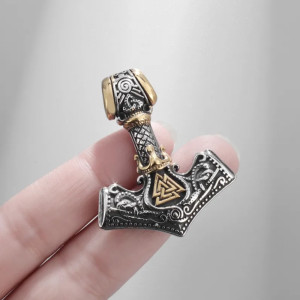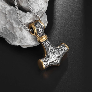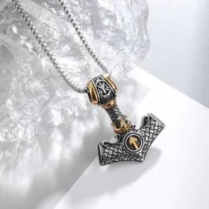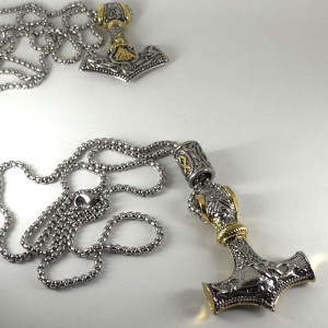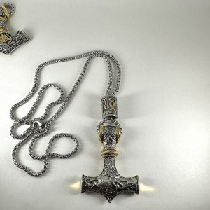 Stainless steel Viking pendant with chain. Material: stainless steel Colour: silver, gold Gender: unisex Chain length: ± 60 cm Weight (pendant + chain): ± 26 gram Height/width: 43 x 34 mm ..