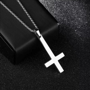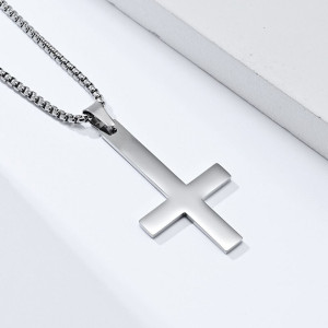 Moving tin pendant on long lace. 2008. Handmade in Ukraine. Colour: silver Material: tin alloy Gender: unisex Chain length: ± 110 cm Weight (pendant + lace): ± 83 gram Height/width (cross): 60 x 47 mm..
