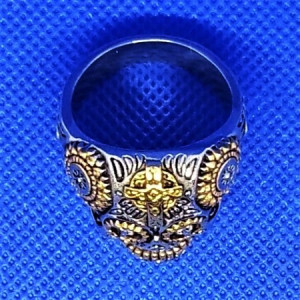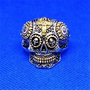 High quality handmade vintage stainless steel ring. Beier, 2019 (LLBR8-327R). Made in Guangdong of China. Description Style: Punk / Heavy Metal / Gothic / Biker Type: scull finger ring Ring material: Stainless Steel, Brass (golden parts made from brass, the other parts of ring made ..