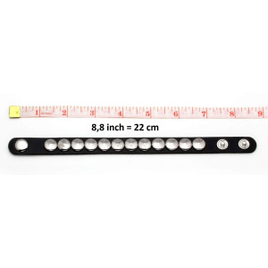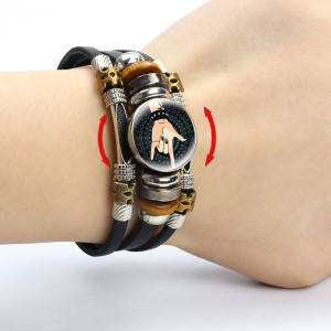 Black leather bracelet with rotatable glass cabochon. Choose cabochon type: S1, S2, S3, S4… etc. Gender: unisex Material: leather, glass Metal Type: alloy Glass Base diameter: 18 mm Bracelet length: 17,5 / 20 cm (adjustable)..