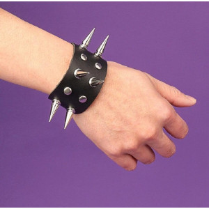 Leather Metal/Punk/Gothic bangle with spikes. Length: 22,6 cm Width: 3,5 cm Setting type: tension setting Material: PU leather, zinc alloy Clasp type: hidden-safety-clasp Gender: unisex Colour: black..