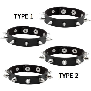 Thin cuff leather Metal/Punk/Gothic Bangle with Spike Rivets. Length: 24 cm Width: 1.5 cm Setting type: tension setting Material: PU leather, zinc alloy Clasp type: hidden-safety-clasp Gender: unisex Colour: black..