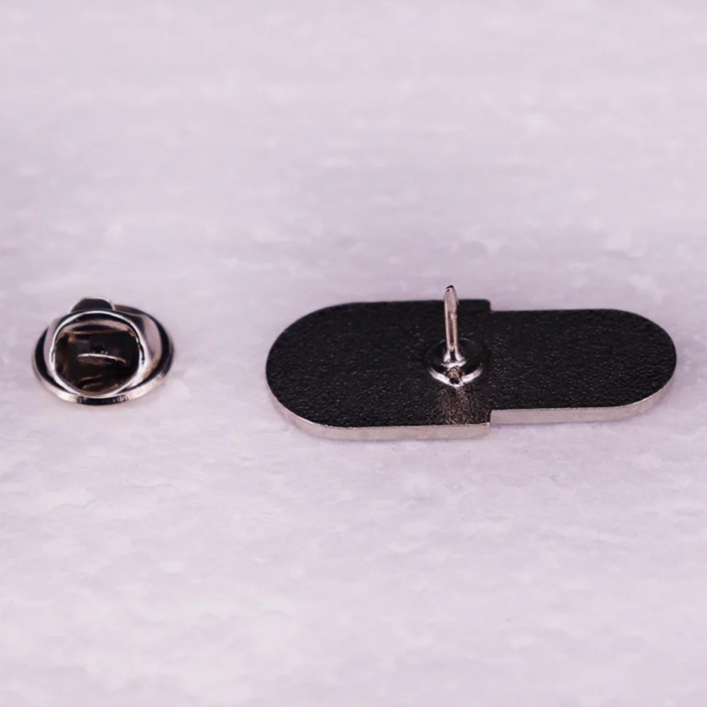 Beautifully cast metal badge with pin on the back that fasten with butterfly clip.