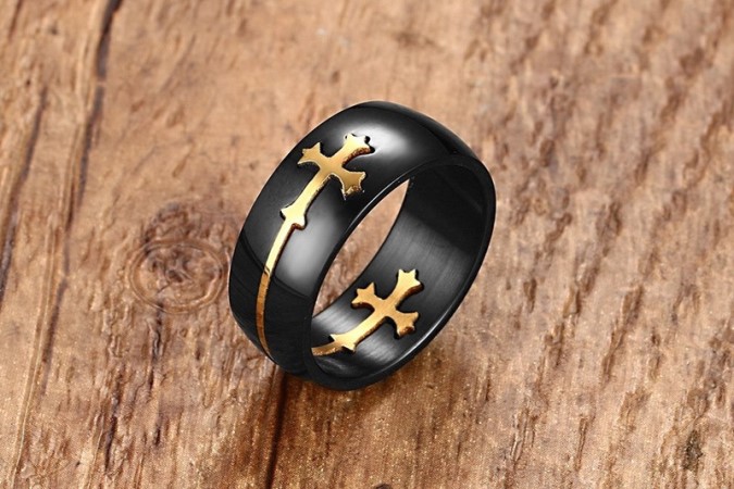 Type: black finger ring with gold removable/separable cross