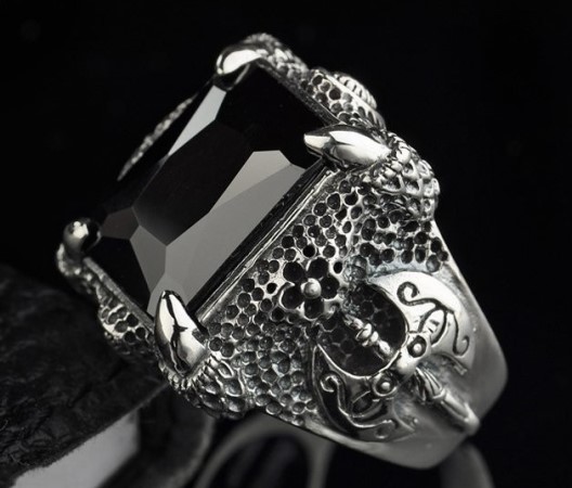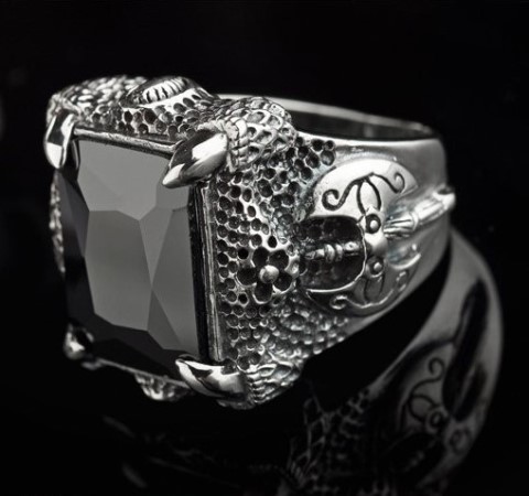 High quality handmade solid 925 Sterling silver ring with big black stone.