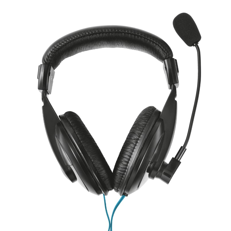 High quality over-ear headset with adjustable soft padded headband and cushioned ear pads for maximum comfort.