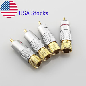 High quality professional high performance Hi-End 24K gold-plated RCA Male connector for large diameter audio cables. Completely gold-plated inside for clean signal transfer. Fit with cable size up to 9 mm. Unique main body design that ensures very firm wire connections that can be fixed by set sc..
