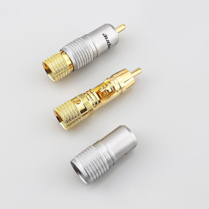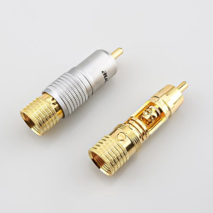High quality professional high performance Hi-End 24K gold-plated RCA Male connector for large diameter audio cables. Completely gold-plated inside for clean signal transfer. Fit with cable size up to 10 mm. Unique main body design that ensures very firm wire connections that can be fixed by set s..