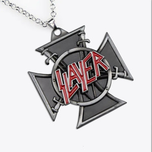 Stainless steel pendant with chain. Slayer! Just the name conjures images of moshpits full of crazy metalheads, headbanging and thrashing. One of the Big Four, these guys only recently decided to retire - in an epic farewell tour which really was farewell! Still, the classic line-up of Tom, Kerry, ..