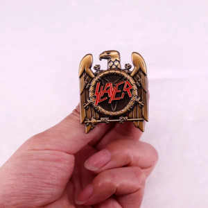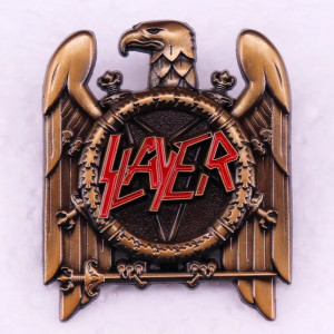Official collectable high quality metal pin badge. Beautifully cast metal badge with 2 pins on the back that fasten with butterfly clips. Just fasten these cool badges to your favourite jacket! The badge measures approximately 38 x 33 mm. Slayer/Global Merchandising Services Ltd./Razamataz.com Lt..